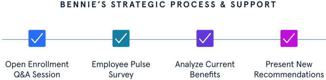 Bennie also worked with Pliancy to administer a survey to their team to gauge what benefits their employees were most interested in. Then, Bennie and Pliancy audited overall benefits utilization. After analyzing their current benefits situation, the Bennie team was able to make recommendations that took into account Pliancy’s projected growth.